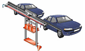 Most modern Automotive production units utilise moving assembly lines, in which assembly workers operate from moving platforms along side the main assembly conveyor. To maintain high levels of efficiency, the assembly workers need the right tools to be readily at hand at every step of the assembly and for this reason it is important that tool-holders are also mobile.