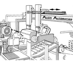 gantry loading system to pick up cylindrical shafts from a hopper,